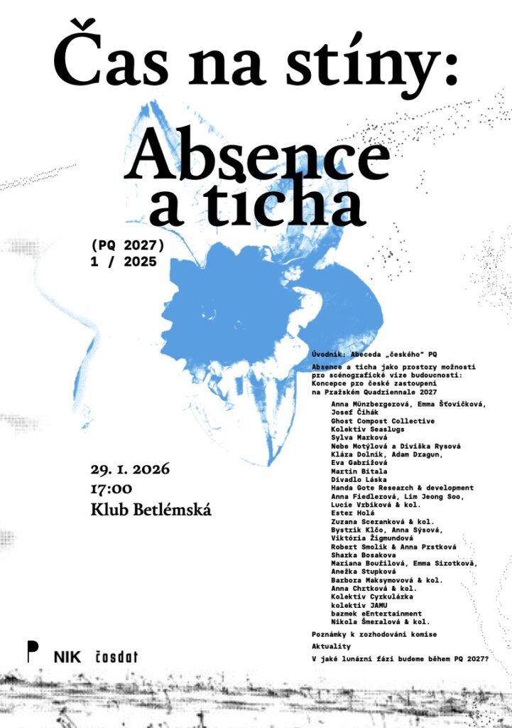 POZVÁNKA na křest druhého čísla scénografického zinu ČOSDAT Čas na stíny, který je věnovaný přihláškám na české zastoupení ve Výstavě zemí a regionů a ve Studentské výstavě pro blížící se ročník Pražského Quadriennale.